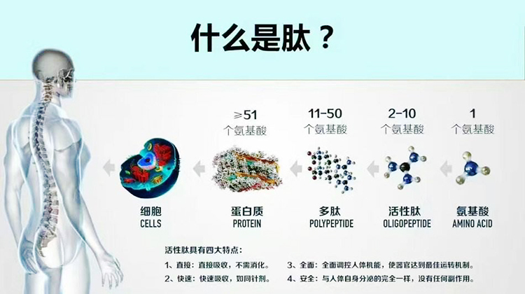 膠原蛋白肽是膠原蛋白或明膠經(jīng)過酶解,分子鏈解體斷裂得到的產(chǎn)物,含有膠原蛋白全部的氨基酸,由于其分子量小、溶解性好,具有良好的吸濕和保濕性,并且易被人體吸收,目前在保健食品、化妝品中得到廣泛應(yīng)用。相較于長(zhǎng)鏈肽,由3~40個(gè)氨基酸殘基組成的低分子量生物活性肽具有高度易消化性,可以更有效地被胃腸道吸收。